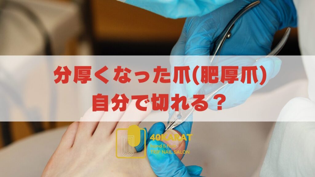 肥厚爪(分厚くなった爪)自分でケアできる? 肥厚爪は軽度であればご自身でのケアが可能ですが、重度の状態ですと、専門家の助けが必要です。 軽度の肥厚爪 自宅でのケア方法 ①入浴時などに爪下に溜まった角質や汚れを綺麗に洗浄します。②厚くなった爪をや... -